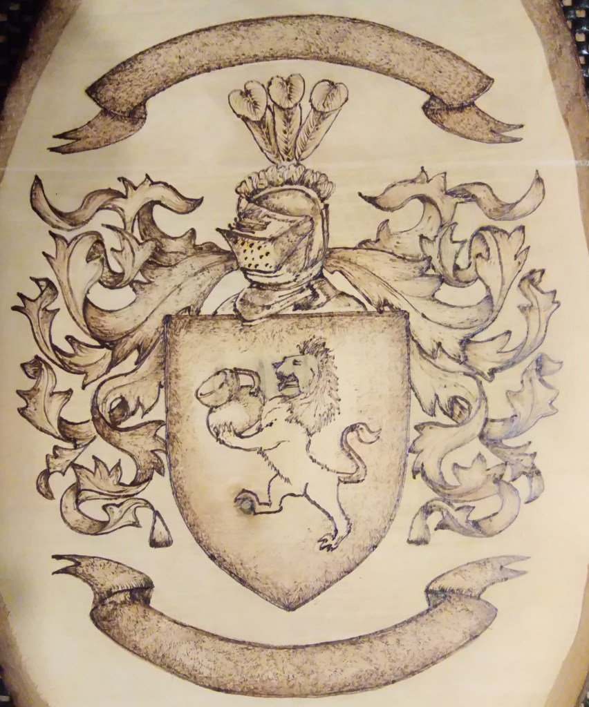 This Coat of Arms is approximately 35cm and required just wood burning. It cost approximately £55.00.